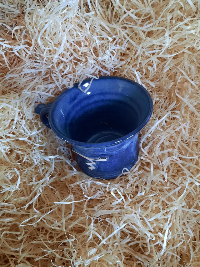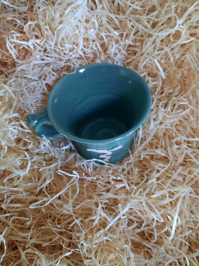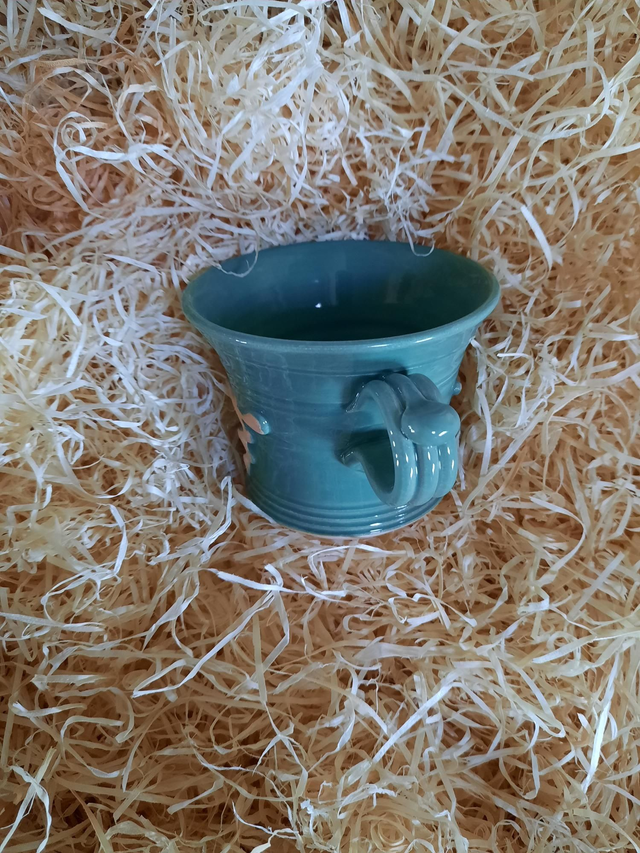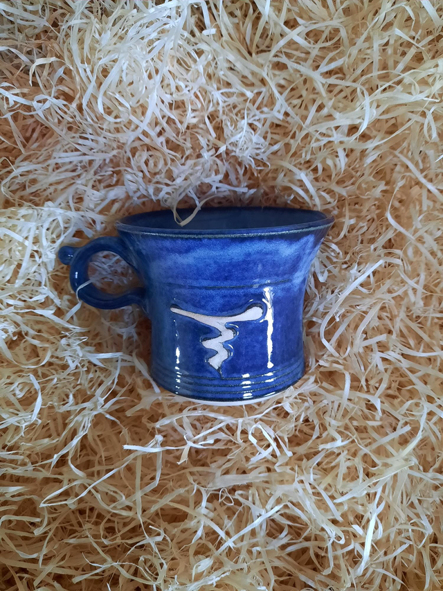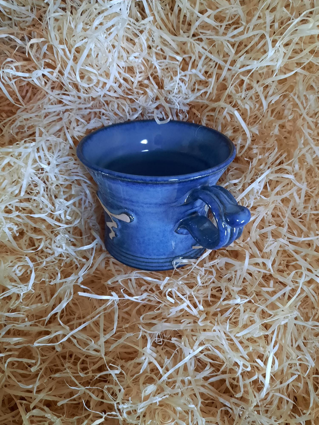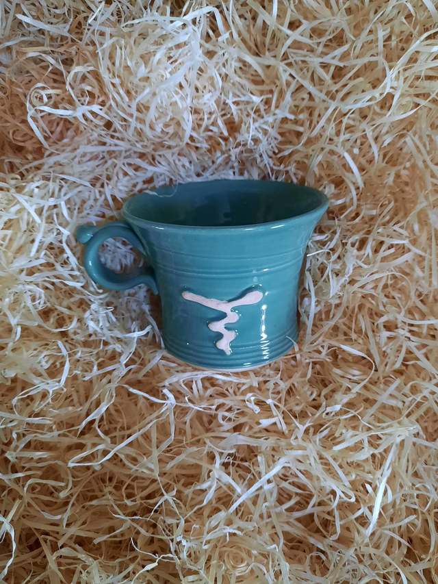 ShortMug, glazed in a solid colour with a decorative unglazed design, product is hand thrown, style and colour may vary from photo.