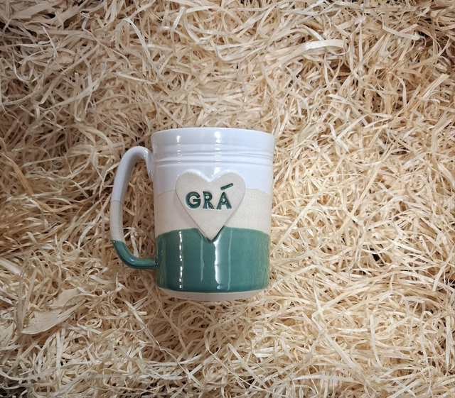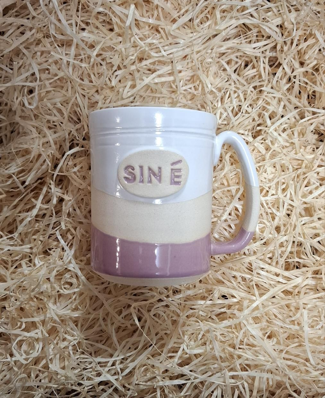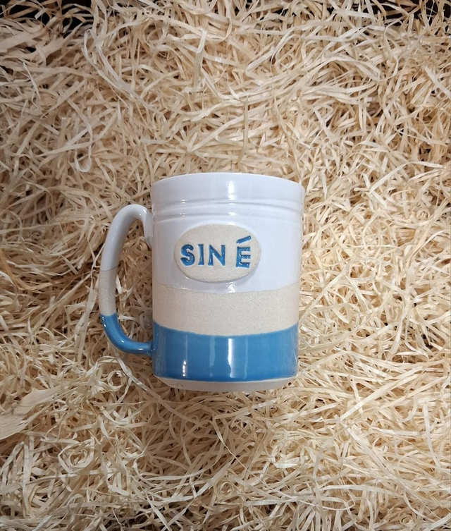 Tall Mug, white and coloured glaze with section of exposed unglazed clay between colours, product is hand thrown, style and colour may vary from image shown. Approx 12fl.oz